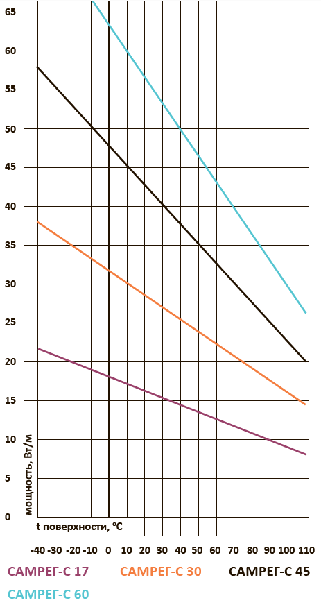 | Мощность тепловыделения | 17, 30, 45, 60 Вт/м |