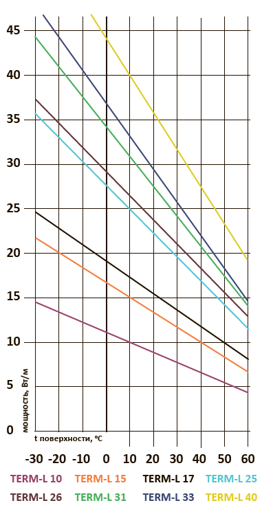 | Мощность тепловыделения | 10, 15, 17, 25, 26, 31, 33, 40 Вт/м |