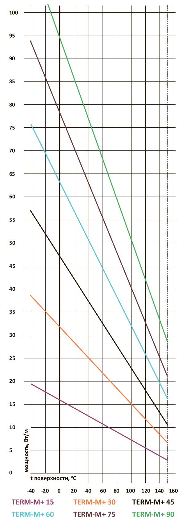 | Мощность тепловыделения | 15, 30, 45, 60, 75, 90 Вт/м |