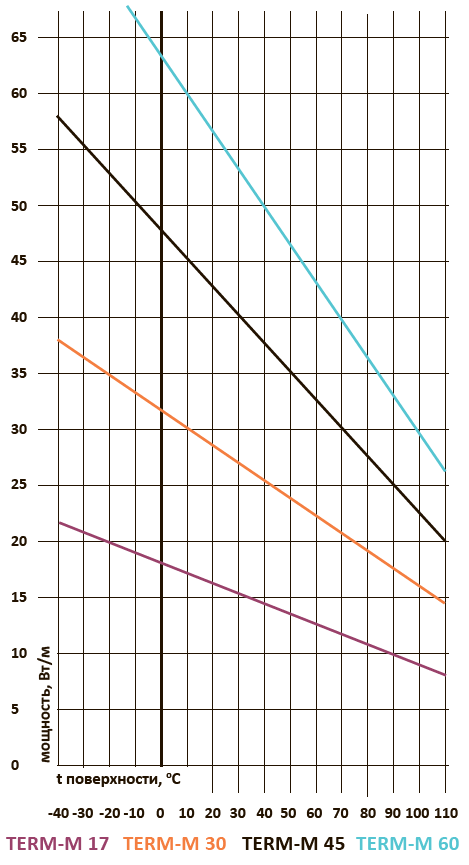 | Мощность тепловыделения | 17, 30, 45, 60 Вт/м |
