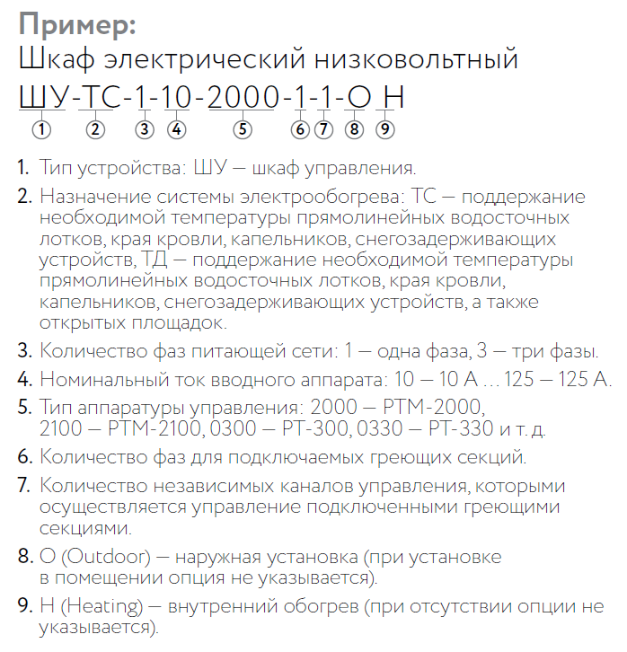 Шкафы управления с опциями O (Outdoor) и/или H (Heating) и марки ШУ-ТМ имеют металлический корпус. Остальные шкафы имеют пластиковый корпус в навесном исполнении.