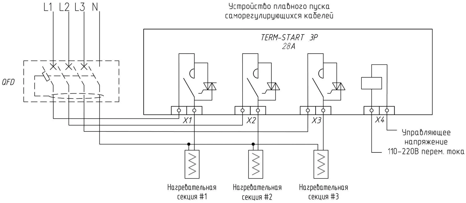 Три независимых канала TERM-START 3P позволяют подключать каждый канал к отдельной фазе в 3-фазной сети.